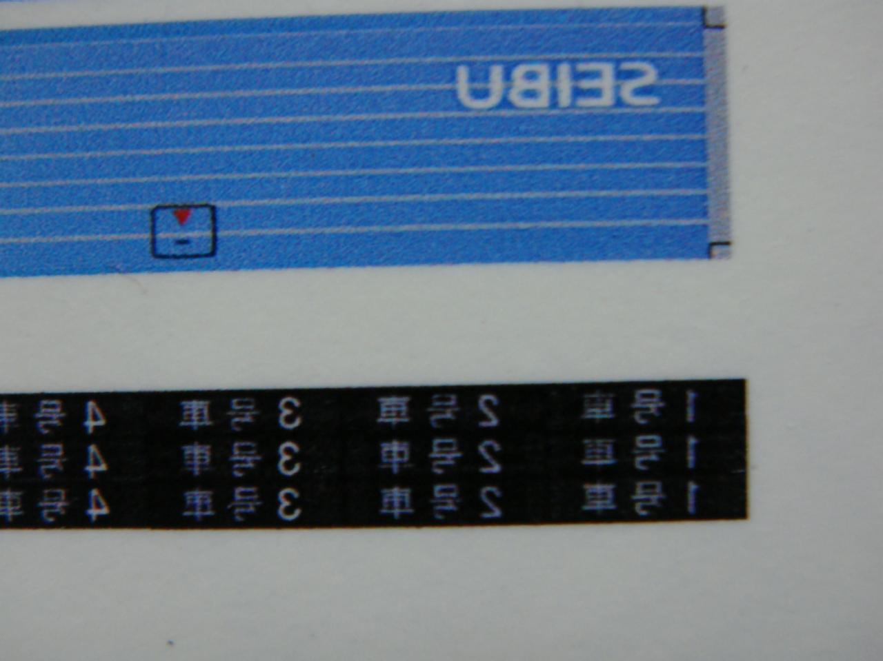 ドアコックのフタも印刷しておきました。行先表示はわかりやすいように号車表示にしています。