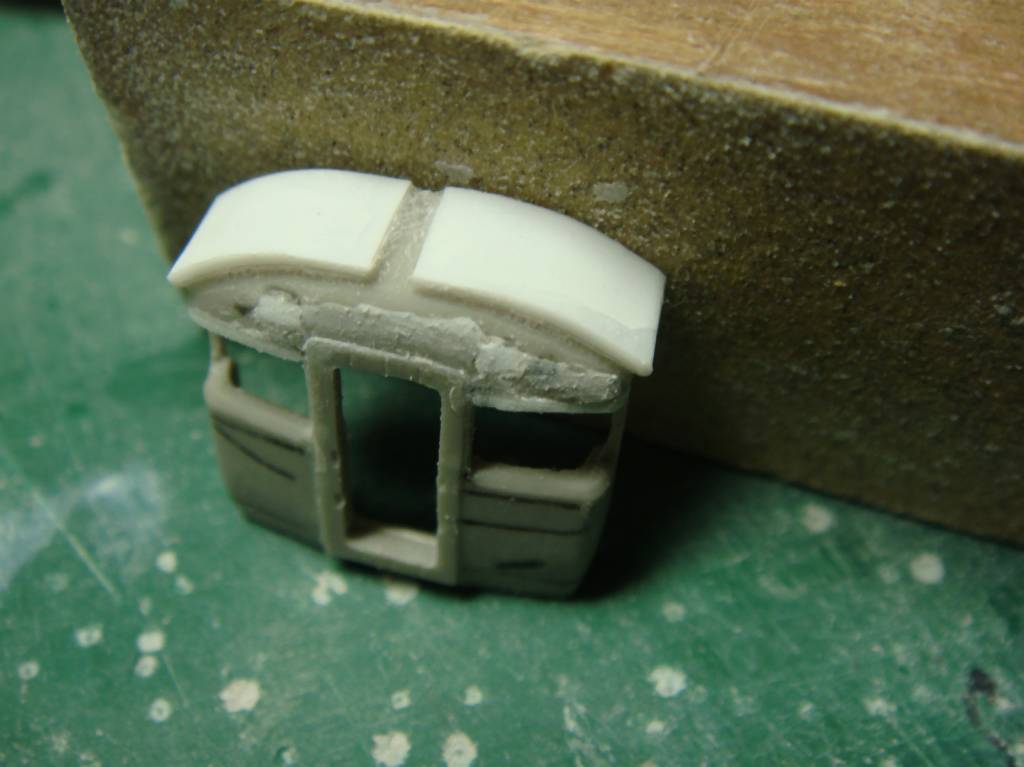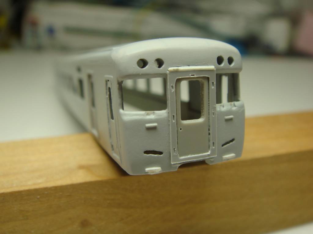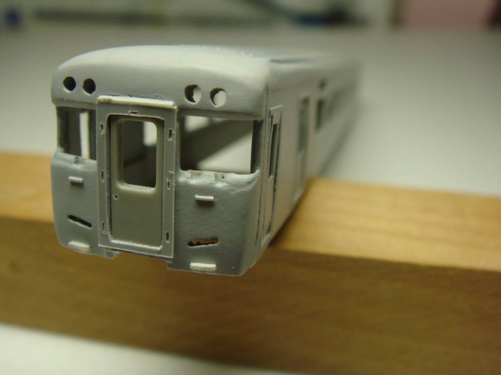 さらに窓まわりにエッジを出してサフを吹いてシルエットを確認した後、ワイパー穴、手すり、ステップ、幌枠(クラフトロボで製作)を取り付けます。若干近鉄臭が残ったか…?