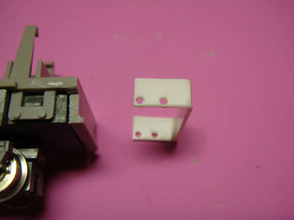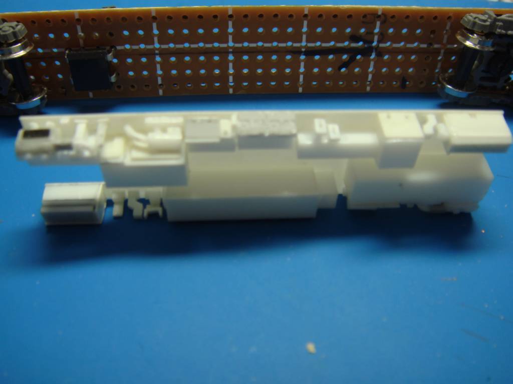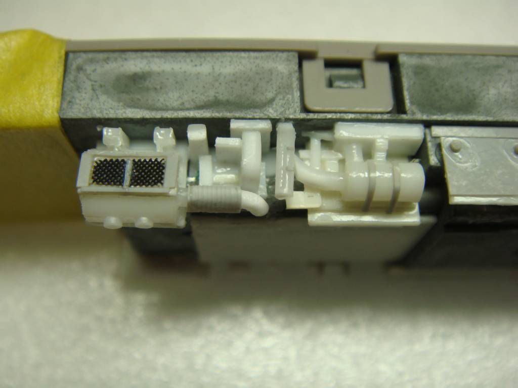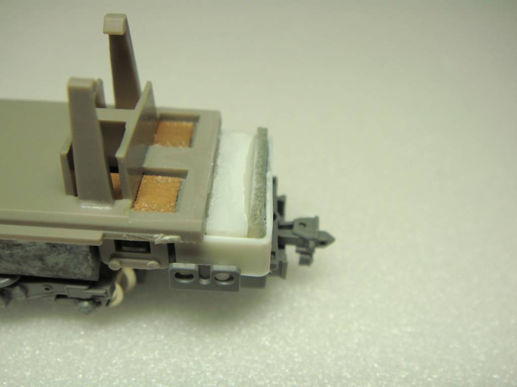 先頭寄りのカプラー取付部は運転室の長さ分だけ現物合わせしてアダプターを作って延長しています。