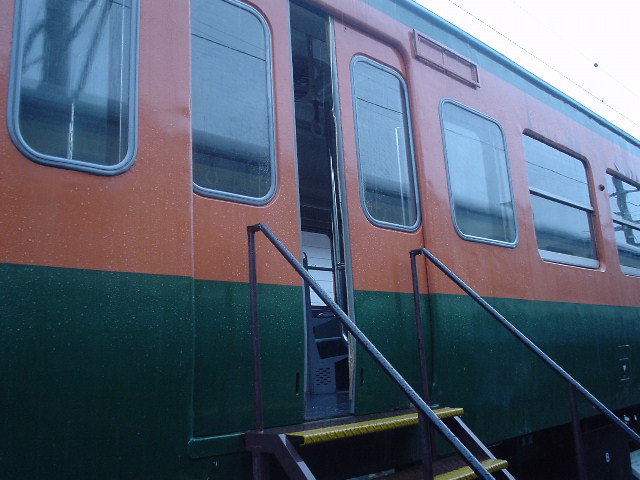 車内にも入ることができます。ちょっと重たいドアをガラガラっとするのがたまらん。福知山線の117系とか113系の手動ドア思い出す。