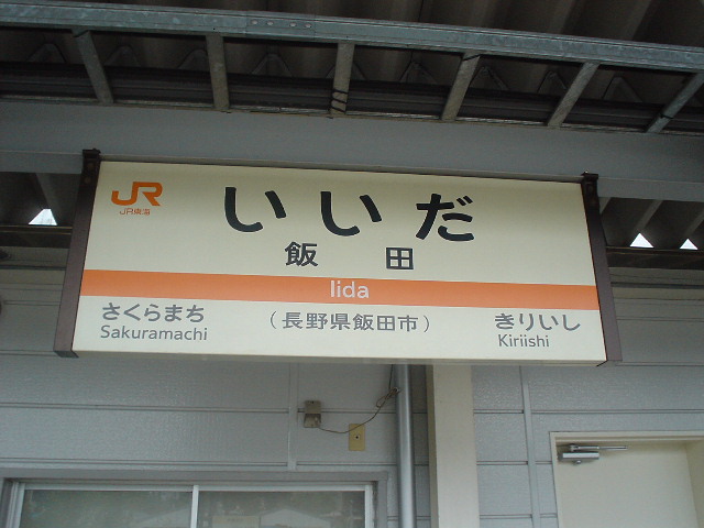 飯田駅に到着です。特急でも豊橋から2時間半かかります。駅名看板好きですが、JR西のさっぱりしたのもいいですが、JR東海のも味があっていいですね。