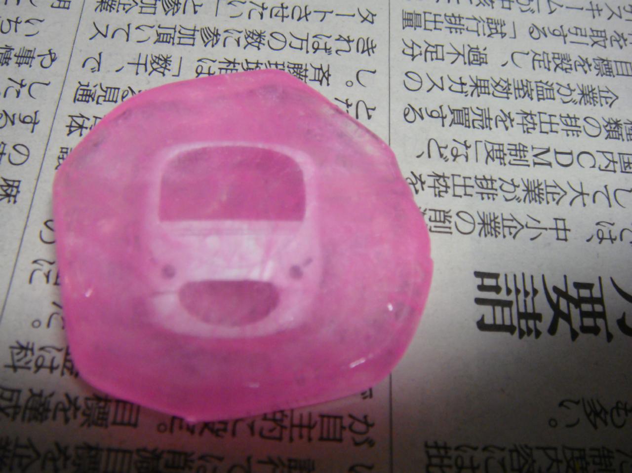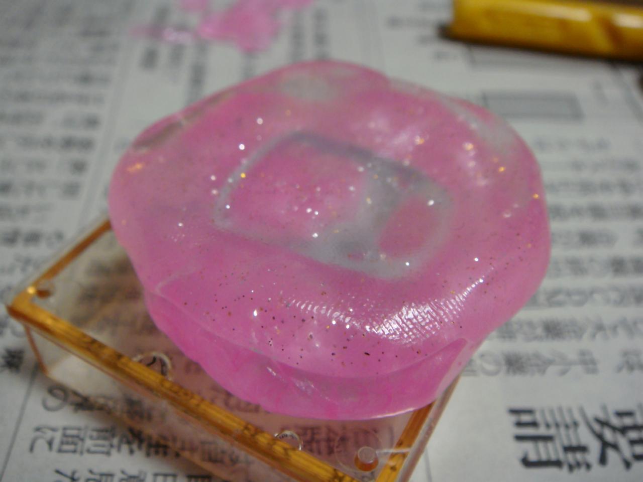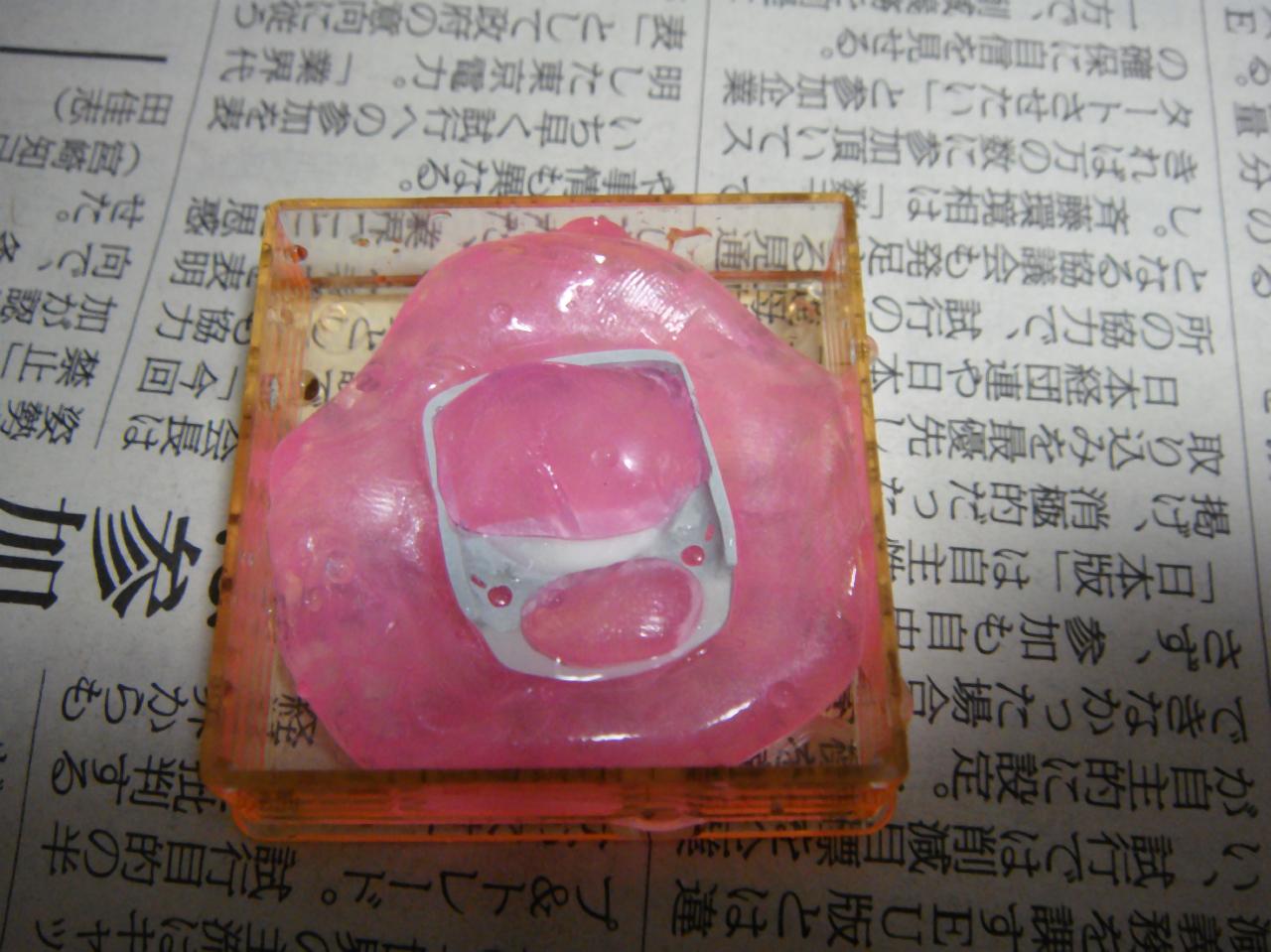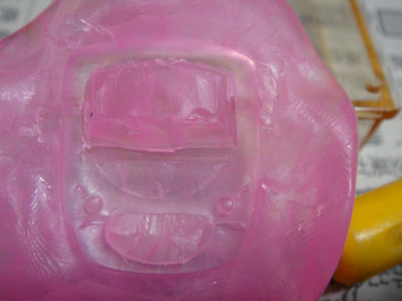 ピンクの上から白(透明)を湯から引き上げて押し込みます。入れ歯とくっつけるやつ…に似てる。。。。