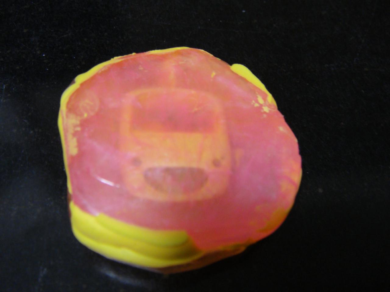 すぐにフニャフニャになるのでケース等に移してギューっと押し込みます。ドライヤーとかでもやわらかくなります。色がついていても結構透けて確認することはできます。型に押し込んだら流水で冷やして固めます。