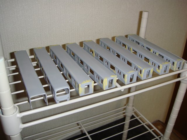 ボディもほぼ出来上がったところであとはクーラーが足りません。クーラーが曲者でGMのバーツでも京王のクーラーが一番似ているような?メトロ10000とか東武50000のクーラーってどうなんだろ??付属編成作るために今度KATOでメトロ10000が発売されるときの床下とか動力とか台車のASSY確保しておこうかな。。。