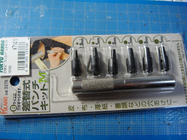 それ以下はベルトの穴を開ける工具(写真左)を見つけたので気長に打ち抜いて出来のいいやつを選定して