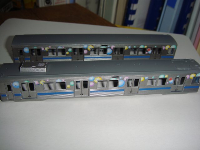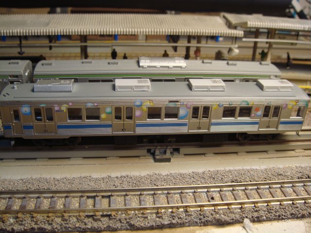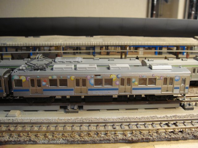 じつはこの編成,作ってるうちに実車は側にちりばめられたシャボン玉が撤去されて