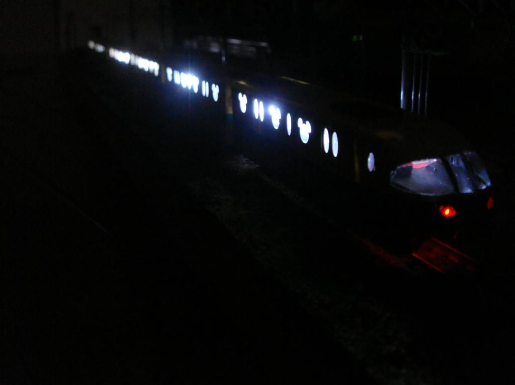 通勤車と違って照明がやわらかいのとまばらなので遠くからだと列車ってわかりにくいんですね。。。